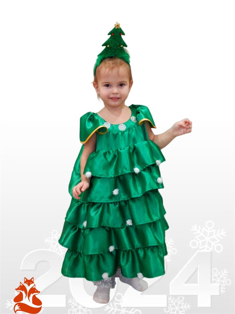 Костюм карнавальный "Ёлочка" - это новогодний образ для девочек, которые хотят выглядеть не только красиво, но и оригинально. Платье средней длины с широкой талией, юбка выполнена в виде многослойных оборок, украшенная красивым декором. В комплект входит ободок с красивой елочкой - всё это обворожительный наряд для Вашей девочки на Новый год. Ткань креп-сатин.