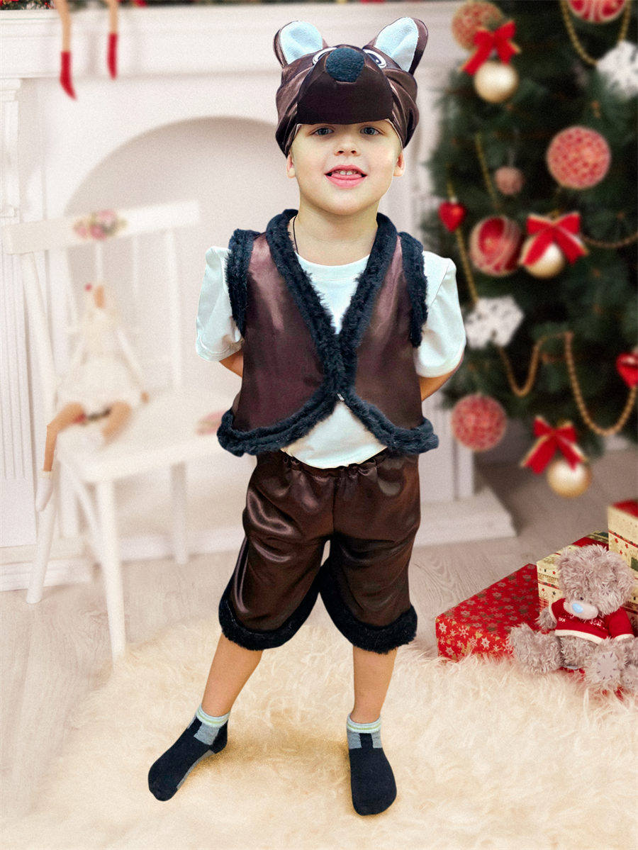 Новогодний детский костюм Мишка – очаровательный и удобный наряд для детей, созданный для новогодних утренников, семейных фотосессий, карнавальных вечеринок или домашних праздников. Изготовлен из мягких, дышащих тканей, он воплощает образ дружелюбного мишки из новогодних историй, позволяя ребенку чувствовать себя в безопасности и радости. Полный комплект включает шапку с ушками, жилет и шорты.