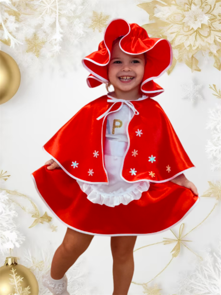 Очаровательный детский костюм красной шапочки создаёт сказочный образ маленькой девочки. Костюм красной шапочки представляет собой накидку, красную юбку с аккуратным белым фартучком и неизменный атрибут персонажа – красную шапочку. В костюме малышки красной шапочки ваша девочка блестяще сыграет главную роль в сказке, а также с удовольствием пойдет на утренник.