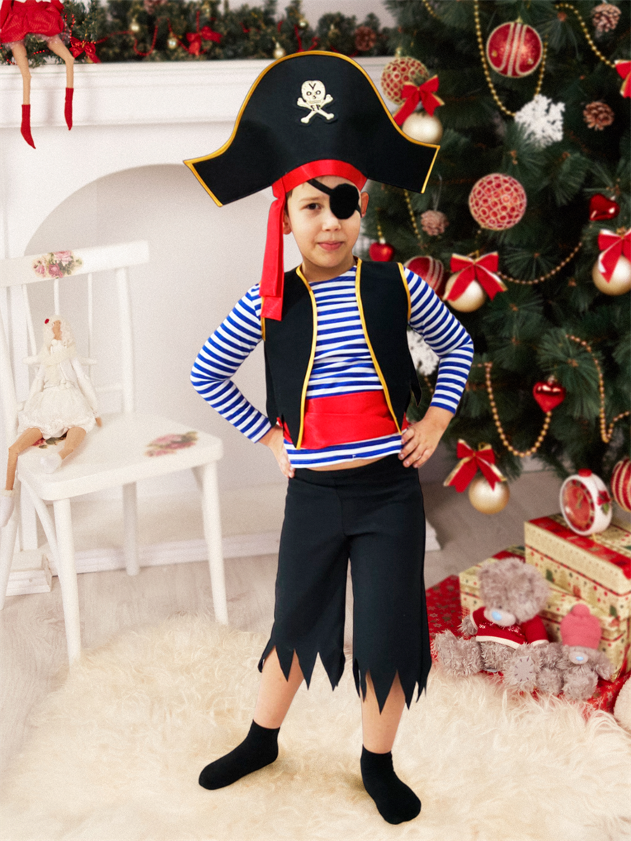 Детский новогодний костюм Санта Клауса для мальчика на утренник, спектакль и праздничный маскарад представляет образ персонажа западного фольклора. В комплект входит кофта свободного кроя с длинным рукавом, прямые штаны, шапка-колпак. Ткань костюма красного цвета сочетается со вставками из искусственного белого меха на вороте, манжетах рукавов, по центру и в нижней части кофты.
