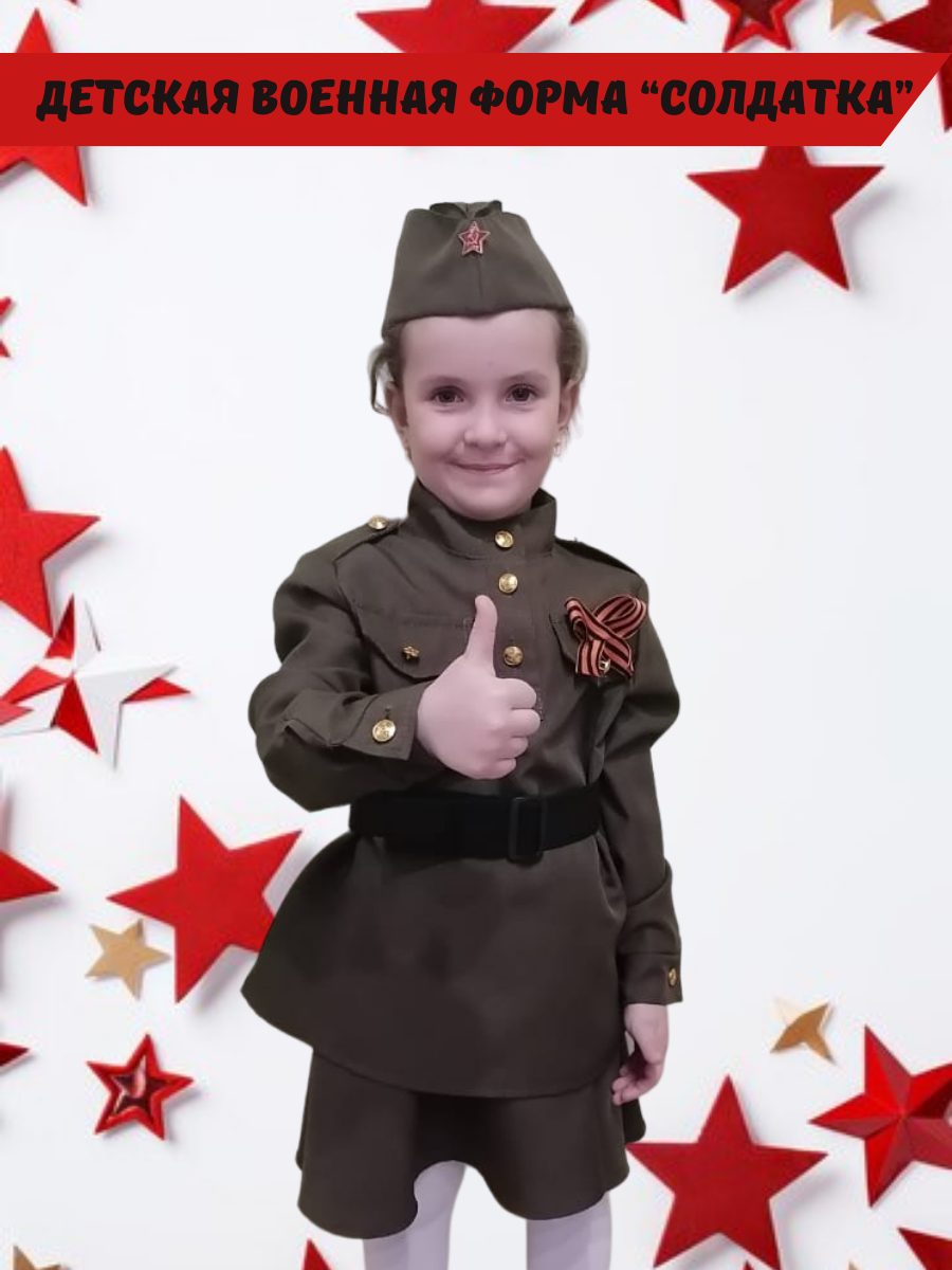 Военный костюм «Солдатка» 900-001 — это не просто одежда, а символ уважения к подвигу предков. Гимнастерка, юбочка, пилотка, ремень всё это в составе костюма.